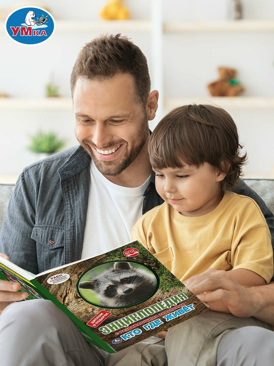 Энциклопедия с развивающими заданиями «Кто где живёт» ТМ «УМка» обязательно понравится маленьким любознайкам:- соответствует ФГОС- рекомендовано академиком раен Матвеевым Н. П.- проверено научными консультантами- одобрено педагогами- красочные иллюстрации- твёрдый переплёт- вырубка на обложке- диплом в подарокЯркая и красочная энциклопедия познакомит ребёнка с разными животными и местами их обитания. Зрелищные фото и удивительные факты увлекут ребёнка и помогут ему быстро, эффективно и с удовольствием усвоить новую информацию.Чтение энциклопедии ТМ «УМка» способствует расширению кругозора и развитию:- визуального восприятия- внимания- памяти- усидчивостиОбъём: 48 стр. Формат: 197 х 255 (А4).Материал: офсетная бумага.Рекомендовано детям младшего школьного возраста.
