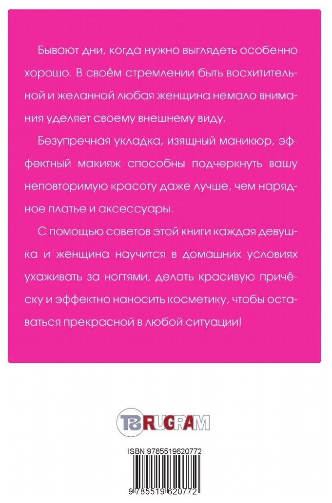 Бывают дни, когда нужно выглядеть особенно хорошо. В своем стремлении быть восхитительной и желанной любая женщина немало внимания уделяет своему внешнему виду. Безупречная укладка, изящный маникюр, эффектный макияж способны подчеркнуть вашу неповторимую красоту даже лучше, чем нарядное платье и аксессуары. С помощью советов этой книги каждая девушка и женщина научится в домашних условиях ухаживать за ногтями, делать красивую прическу и эффектно наносить косметику, чтобы оставаться прекрасной в любой ситуации!