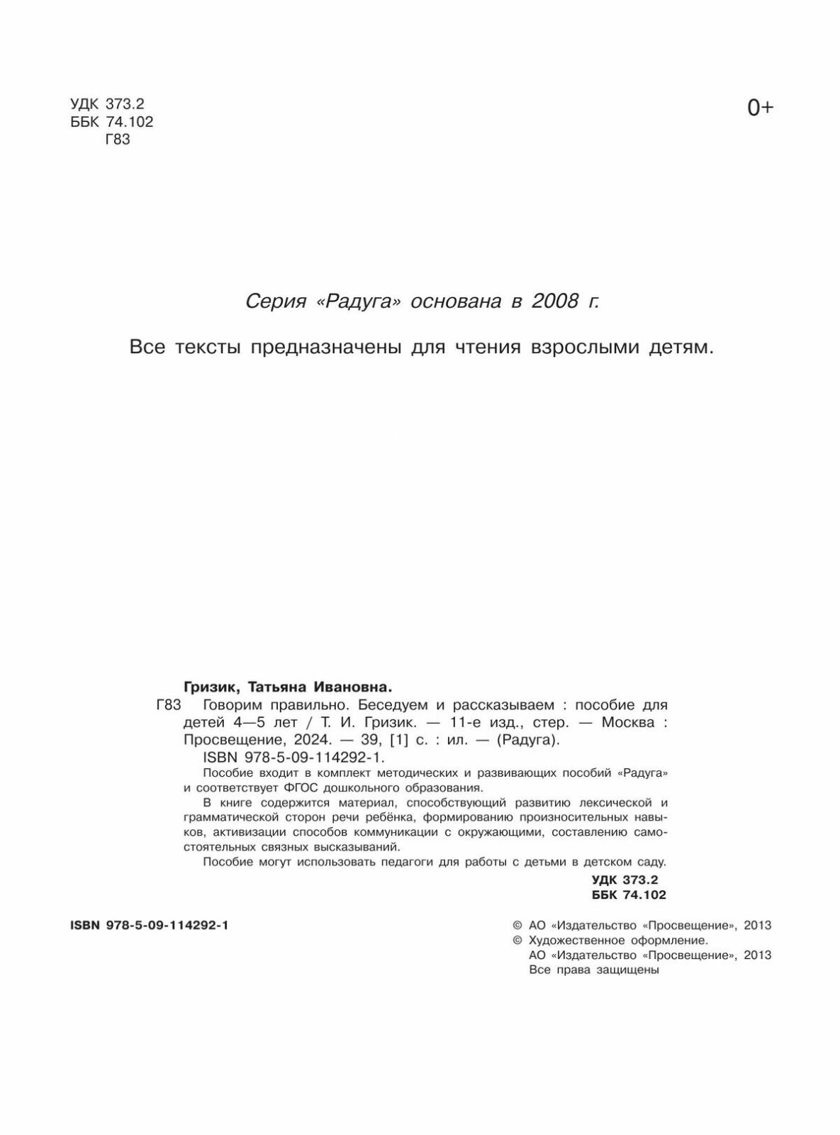 Книга Просвещение издательство Говорим правильно. Беседуем и рассказываем. Пособие для ... (Гризик Татьяна Ивановна), 2021