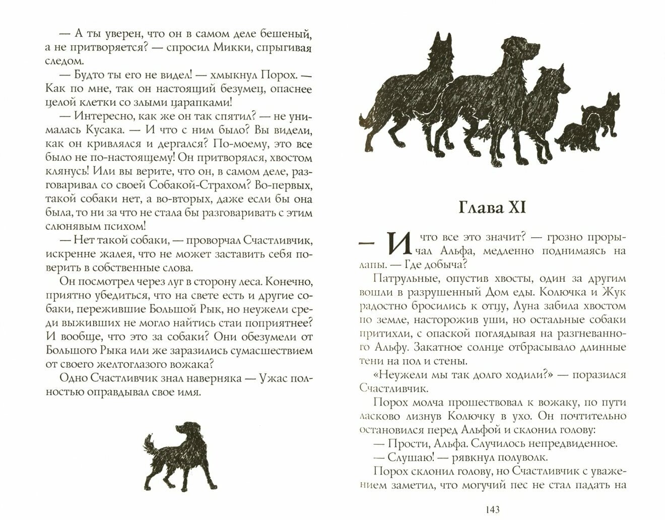 Лаки и Альфа - вожак Дикой стаи - наконец достигают в отношениях хрупкого согласия, однако Альфа однозначно дает понять, что некоторых собак он никогда и ни за что не признает и не сделает их членами своей Стаи. Стая вновь отправляется в путь в поисках нового безопасного дома как можно дальше от Сада Свирепых псов и ее вожака Стали. Но опасность подстерегает повсюду. Когда путешественники встречают других собак, выживших после Большого Рыка, смерть вновь подбирается к Счастливчику и его друзьям. Вожак новой стаи, безумный кровожадный пес Ужас, во множество раз страшнее и опаснее всех встреченных ими прежде неприятностей. Для среднего школьного возраста.