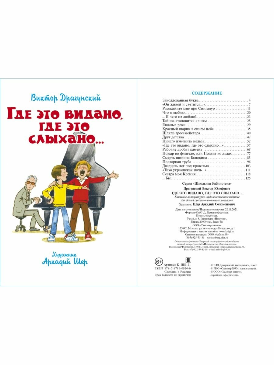 Книга «Где это видано, где это слыхано» из цикла "Денискины рассказы". Веселые истории, рассказанные обаятельным девятилетним Дениской о его друзьях, о школе, дворе, о любимом городе. Серия рекомендована Департаментом общего и среднего образования Министерства общего и профессионального образования Российской Федерации.