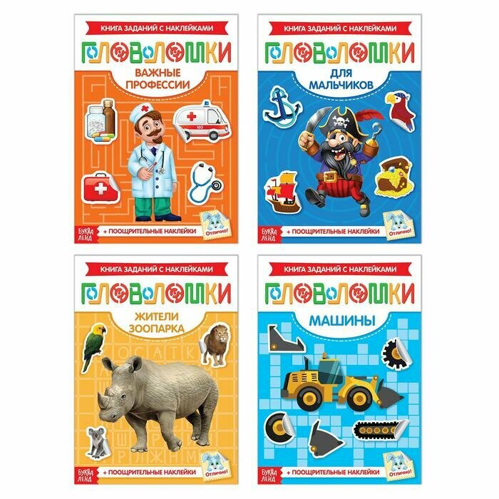 Задумываетесь о том, как привить ребёнку любовь к чтению? Рецепт прост: возьмите издание с красивыми картинками, захватывающей историей и милыми героями. Наклейки набор «Головоломки для мальчиков», 4 шт по 12 стр - отличный вариант для тех родителей, которые привыкли окружать своего малыша только лучшими и качественными вещами. За такой книжкой ваш ребёнок проведёт время с пользой и удовольствием, узнает много нового и интересного.