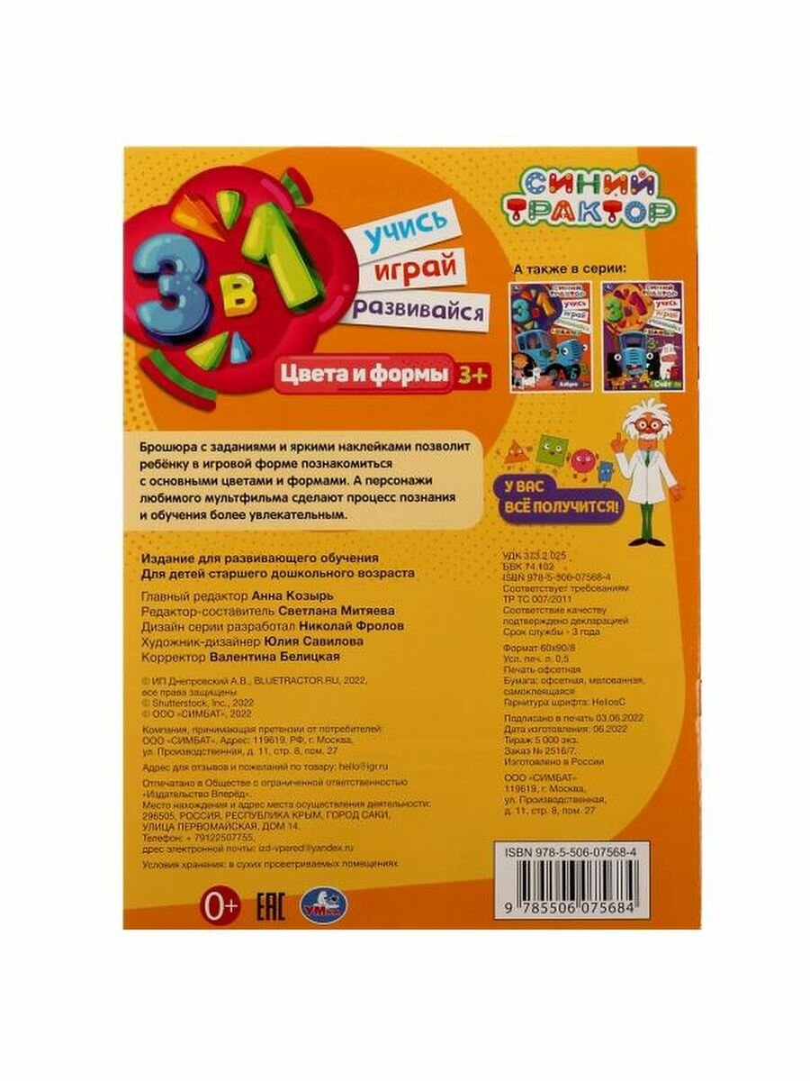 Книга 335609 Синий трактор. Цвета и формы. Учись! Играй! Развивайся! 3 (без автора), 2022