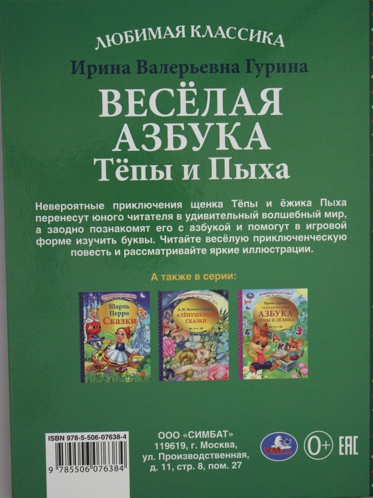 Книга Умка 9785506076384 Весёлая азбука Тёпы и Пыха. Гурина Ирина. Любимая классика Размер упаковки: 26*20*1 см. Размер изделия: 26*20*1 см. Страниц: 96 Функционал: азбука Упаковка: нет Страна обладатель бренда: Россия Материал: бумага, картон Автор: И. Гурина Комплектация: книга - 1 шт. Возраст ребенка: от 0 лет Книжка предназначена для изучения букв русского алфавита в игровой форме. Она дополнена яркими картинками и различными упражнениями для осознанного чтения. Книжки с крупными буквами созданы специально для малышей - так им легче научиться читать. Чтение даже в юном возрасте помогает детям развивать важные навыки и способности, оно активизирует мышление, формирует усидчивость, логику и воображение. Изделие производится из качественных и проверенных материалов, которые безопасны для детей.