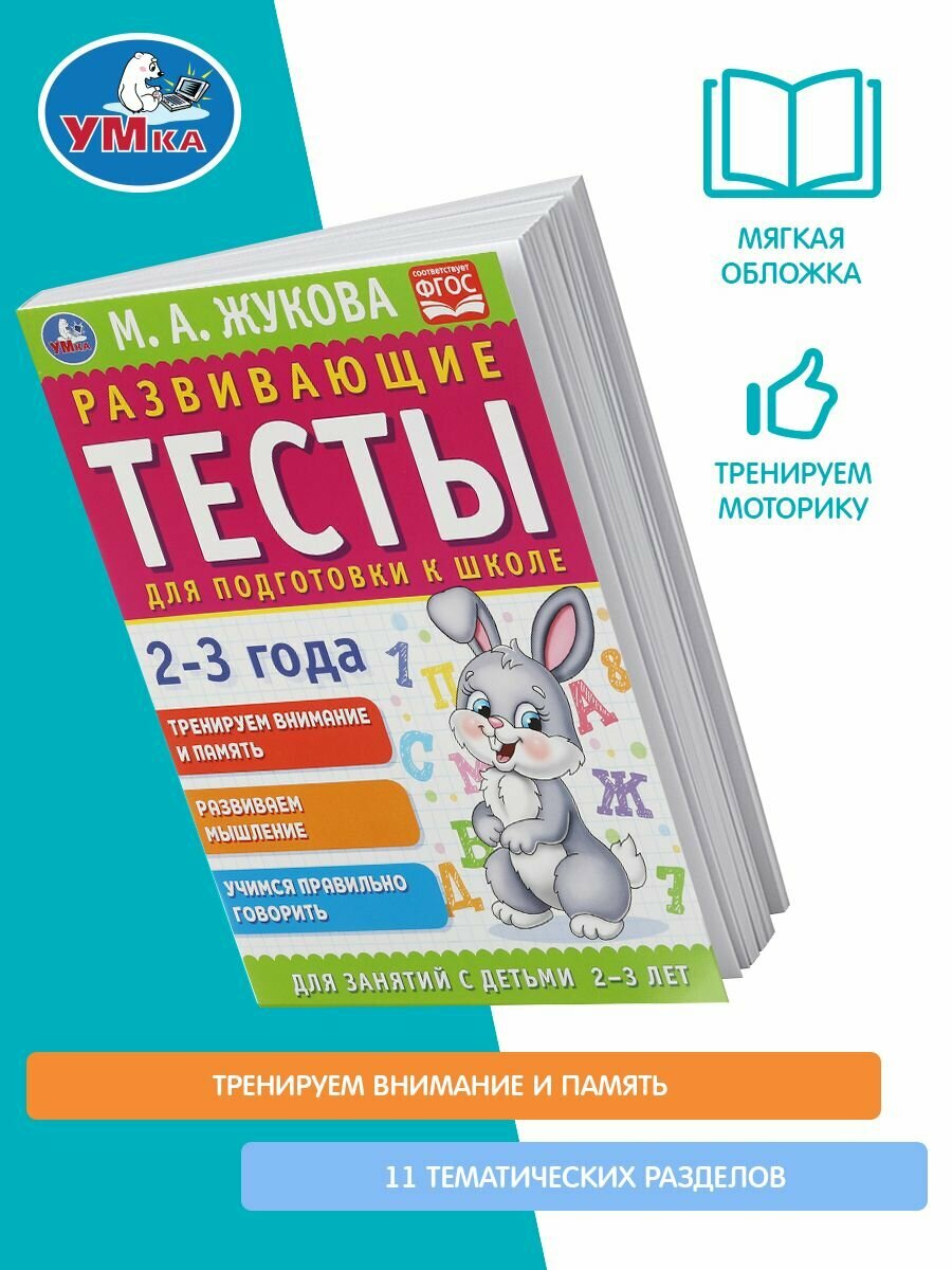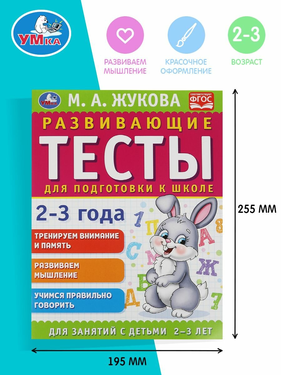 Книга Развивающие тесты для подготовки к школе 2-3 года. М.А. Жукова. 195х255мм (Жукова Марина Александровна), 2021
