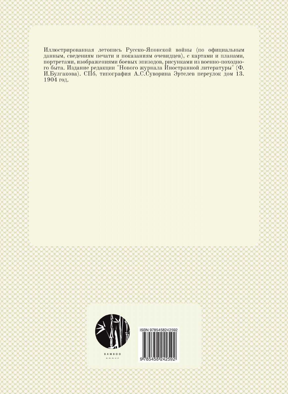 Эта книга - репринт оригинального издания (издательство "Новый журнал Иностранной литературы", 1904 год), созданный на основе электронной копии высокого разрешения, которую очистили и обработали вручную, сохранив структуру и орфографию оригинального издания. Редкие, забытые и малоизвестные книги, изданные с петровских времен до наших дней, вновь доступны в виде печатных книг. Иллюстрированная летопись Русско-Японской войны (по официальным данным, сведениям печати и показаниям очевидцев), с картами и планами, портретами, изображениями боевых эпизодов, рисунками из военно-походного быта. Издание редакции "Нового журнала Иностранной литературы" (Ф.И.Булгакова). СПб, типография А.С.Суворина Эртелев переулок дом 13. 1904 год.