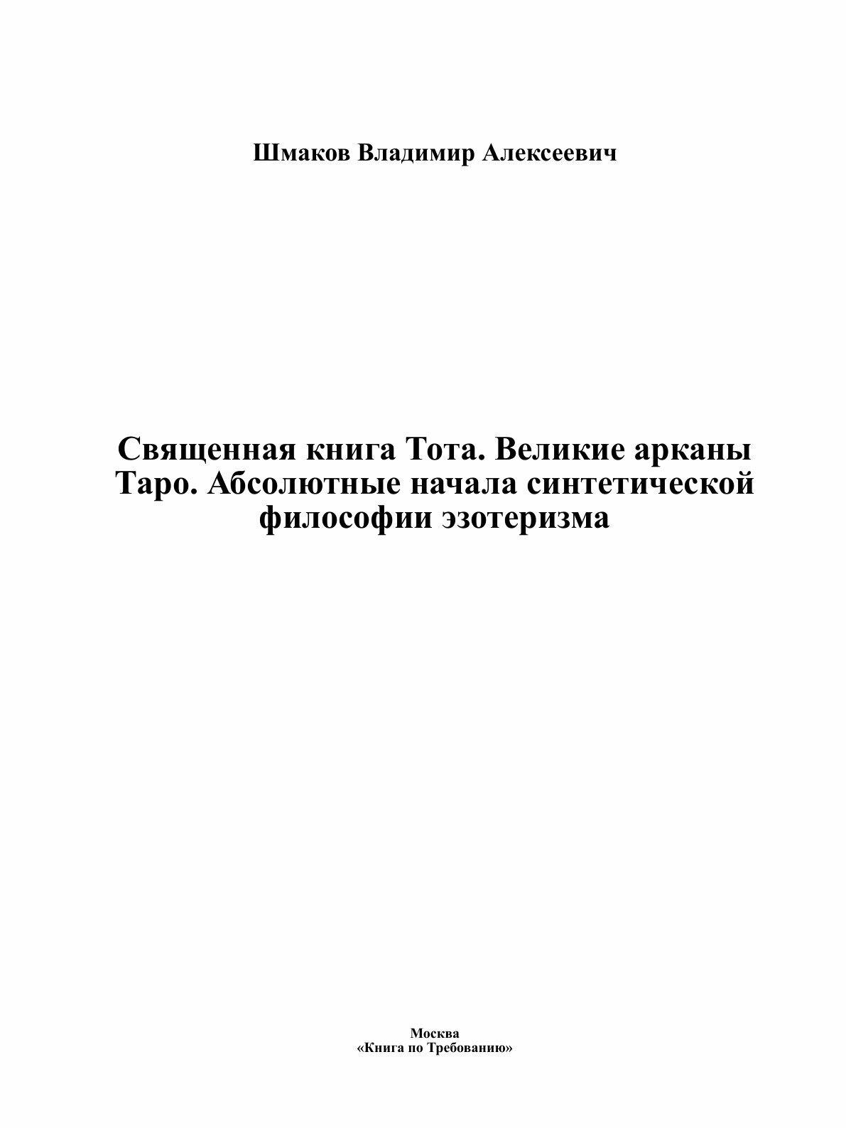 Книга Священная книга Тота. Великие арканы Таро. Абсолютные начала синтетической филосо... (Шмаков Владимир Алексеевич), 2022