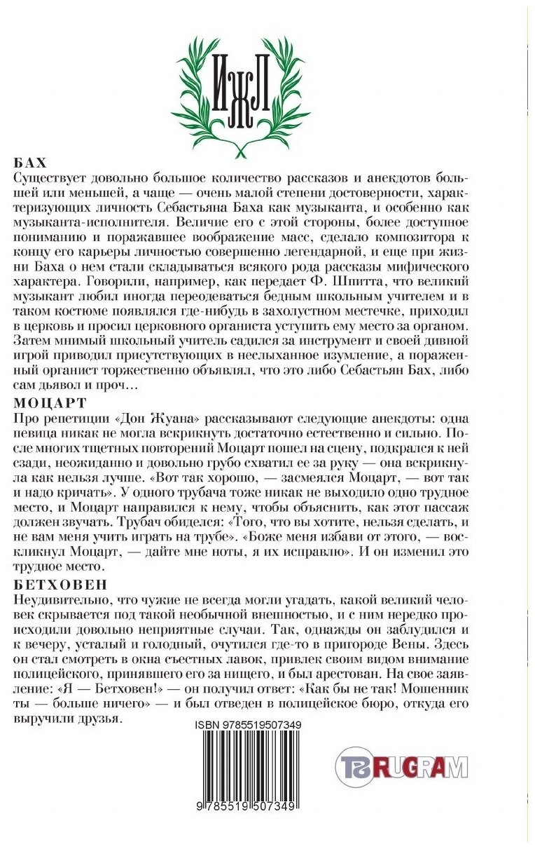 Флорентий Федорович Павленков — легендарный русский книгоиздатель, переводчик и просветитель или, как нынче принято говорить, культуртрегер. В 1890 году он придумал и начал издавать свою самую знаменитую серию «Жизнь замечательных людей». При жизни Павленкова увидели свет 191 книга и 40 переизданий, а общий тираж превысил миллион экземпляров. Это была, по признанию многих, первая в Европе коллекция биографий, снискавшая колоссальный успех у читателей. Изданные 100 лет назад почти 200 биографий знаменитых писателей и музыкантов, философов и ученых, полководцев, изобретателей и путешественников, написанных в жанре хроники, остаются и по сей день уникальным информационным источником. В книгу вошли биографии музыкантов всех времени и народов — Баха, Моцарта и Бетховена.