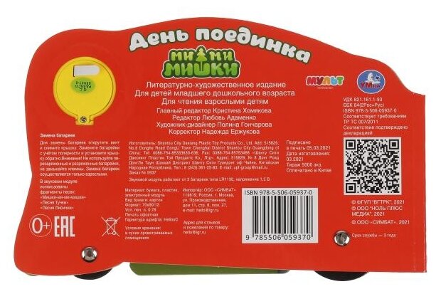 Сервис сравнения цен СкидкаГИД предлагает сравнить цены на товар «Книга: Книга День поединка. Ми-ми-мишки 1 кнопка 3 песенки (Адаменко Л.); Умка, 2021»