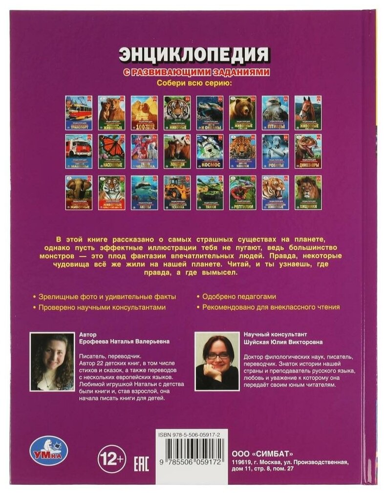 Энциклопедия с развивающими заданиями "Монстры" ТМ "Умка" станет отличным подарком для маленьких любознаек:-соответствует ФГОС-проверено научными консультантами-одобрено педагогами-развивающие задания-красочные иллюстрации-твердый переплет-диплом в подарокЭта занимательная энциклопедия познакомит юного читателя с разными видами монстрических существ. Зрелищны картинки, удивительные факты и занимательные задания увлекут ребенка и помогут ему интересно провести время за чтением данной книги.Чтение энциклопедии ТМ "Умка" способствует расширению кругозора и развитию:-визуального восприятия-внимания-памяти-усидчивостиОбъем: 48 стр. Формат: 197 х 255 мм (А4).Материал: офсетная бумага, мелованная.Рекомендовано детям младшего школьного возраста.