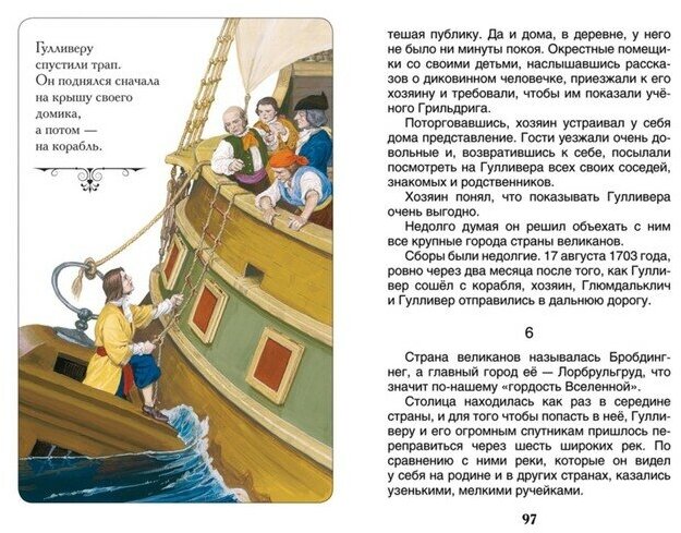 Отправляясь в дальнее плавание, корабельный врач Гулливер и не подозревал, какой головокружительный оборот примет его путешествие. В книгу вошел классический пересказ для детей сатирического романа английского писателя Джонатана Свифта (1667-1745) о невероятных приключениях Гулливера в фантастической стране Лилипутии и в стране великанов Бробдингнег.