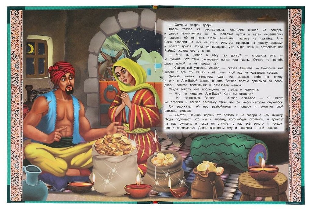 В книгу вошла любимая многими сказка из сборника «Тысяча и одна ночь», данная в переводе М.А. Салье. В сказке идёт речь о двух братьях - бедном юноше Али-Бабе, которому посчастливилось обнаружить сокровищницу богатых разбойником, и о жадном Касиме, не знавшим меры и подвергшемуся из-за этого большой опасности. Юный читатель с удовольствием отправится вместе с героями книги в удивительное восточное путешествие, а красочное оформление сделает это путешествие ещё более увлекательным. Книга «Али-Баба и сорок разбойников» из серии «Любимые книжки» станет отличным вариантом для самостоятельного чтения: - известная сказка, - крупный шрифт, - яркие иллюстрации, - твёрдый переплёт.