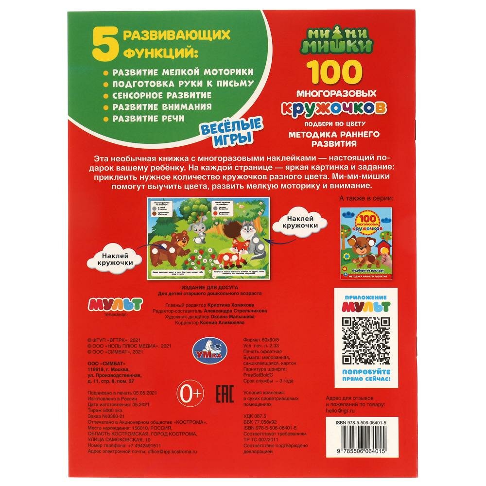 Книга МиМиМишки.100 многоразовых кружочков. Веселые игры (Стрельникова А.), 2021