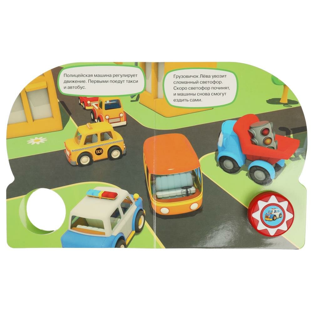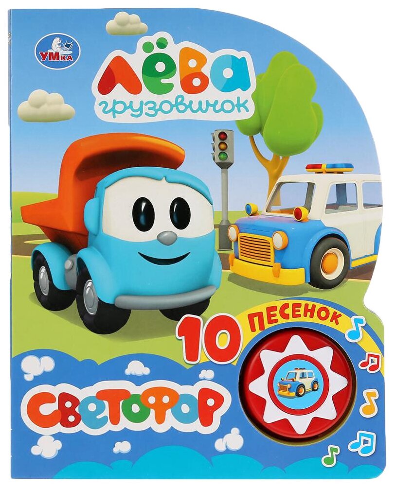 Музыкальная книжка «Грузовичок Лёва. Светофор» ТМ «УМка» станет прекрасным подарком для ребёнка: 10 песенок, 1 звуковая кнопка, любимые герои, яркие иллюстрации, фигурная вырубка. Малыш будет с удовольствием рассматривать яркие страницы с изображением персонажей мультсериала, читать увлекательную историю и слушать песенки. Одно нажатие на кнопку - песенка включится, второе нажатие - выключится. Книжка сделана из плотного картона, поэтому родители могут не опасаться за её сохранность. Благодаря компактному формату её удобно брать с собой.