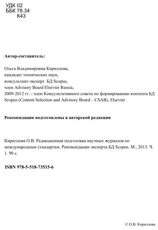 Редакционная подготовка научных журналов по международным стандартам (Кириллова Ольга Владимировна), 2013