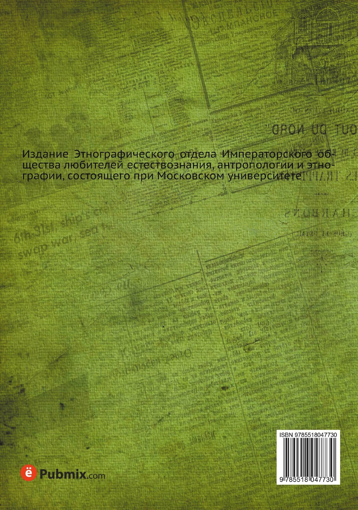 Издание Этнографического отдела Императорского общества любителей естествознания, антропологии и этнографии, состоящего при Московском университете