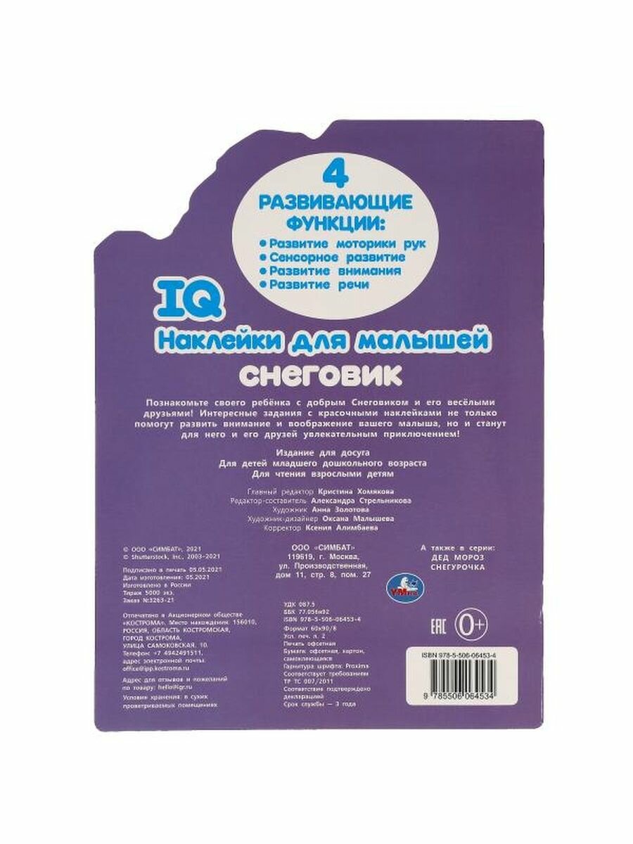 Книга с наклейками Снеговик (Стрельникова А.), 2021
