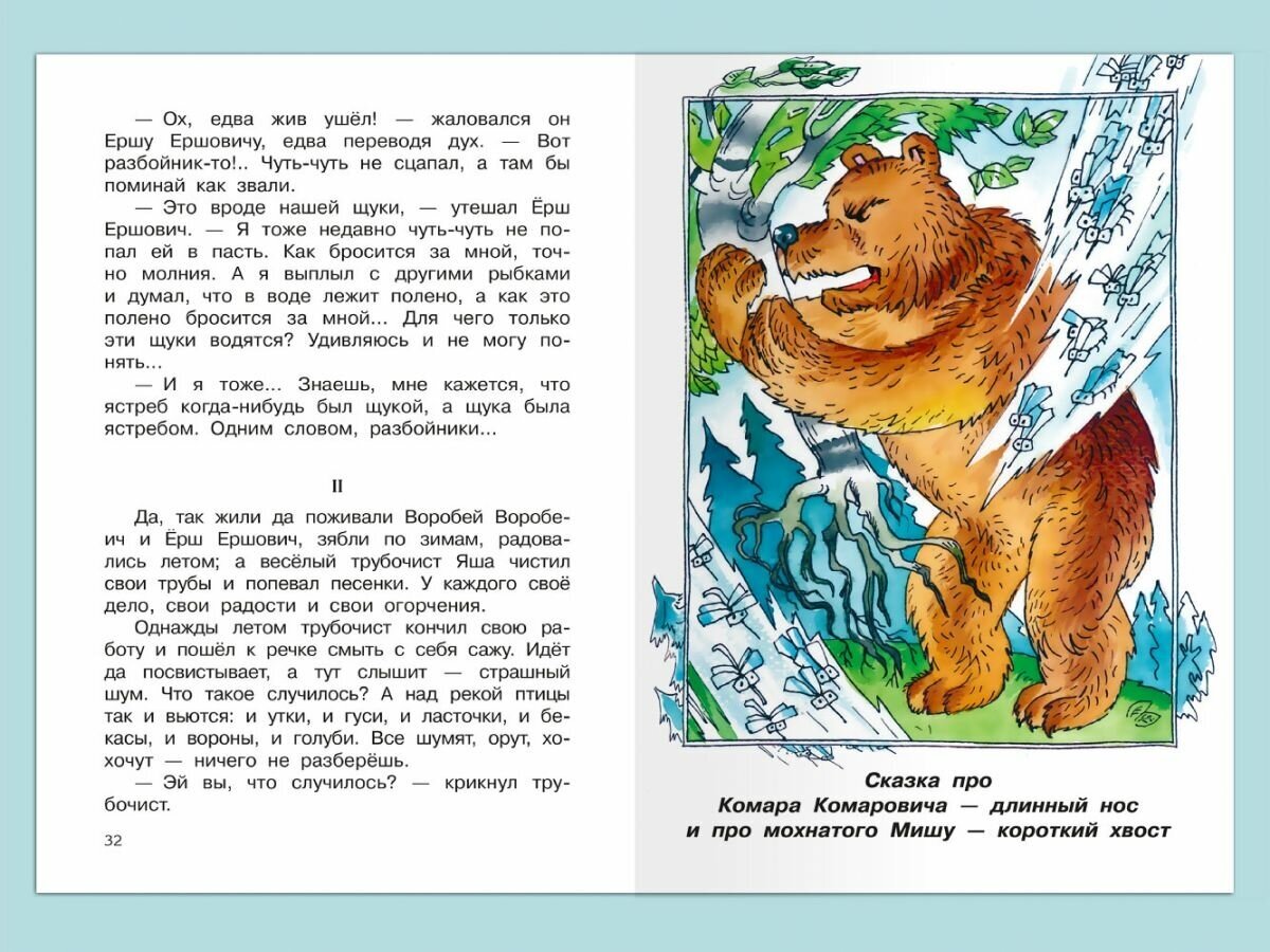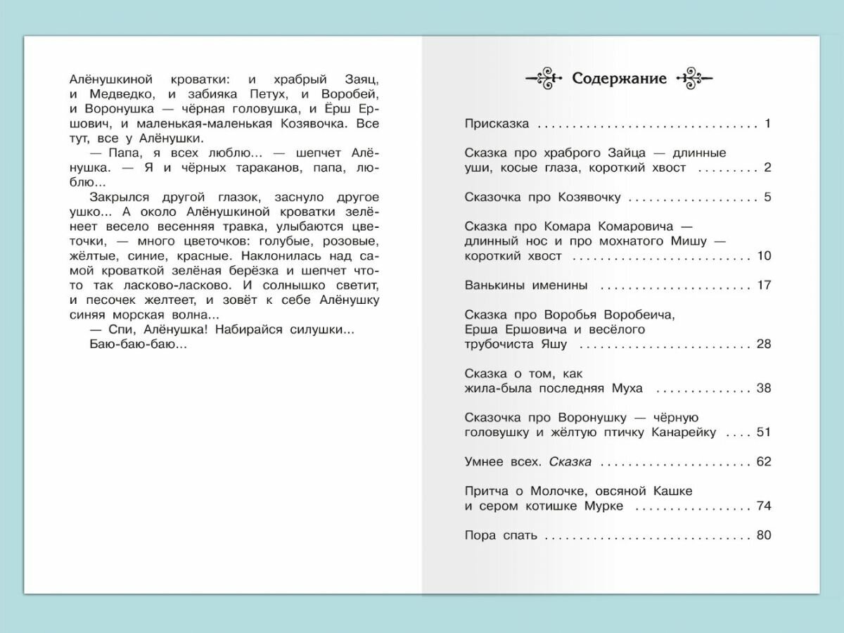 Русский прозаик Д. Н. Мамин-Сибиряк стал сочинителем сказок совершенно случайно – начал писать их для своей маленькой дочки, увлёкся творчеством для детей и в итоге создал множество удивительных сказочных историй. Сказки Д. Н. Мамина-Сибиряка стали классикой детской литературы и вошли в школьную программу для ребят младшего школьного возраста. В сборник «Алёнушкины сказки», вышедший в серии «Школьная библиотека» издательства «Омега», вошли самые любимые и интересные сказки. Тексты представлены без сокращений, напечатаны на хорошей бумаге крупным шрифтом и содержат цветные иллюстрации З. Яриной. Издание среднего формата станет отличным дополнением домашней и школьной библиотеки и не займёт много места в рюкзаке. Такая книга – лучший подарок для школьника. В сборник вошли следующие произведения: Присказка Про храброго Зайца-длинные уши, косые глаза, короткий хвост Сказочка про козявочку Про Комара Комаровича-длинный нос и про мохнатого Мишу-короткий хвост Ванькины именины Сказка про Воробья Воробеича, Ерша Ершовича и весёлого трубочиста Яшу Сказка о том, как жила-была последняя Муха Сказка про Воронушку – черную головушку и желтую птичку Канарейку Умнее всех. Сказка Притча о Молочке, овсяной Кашке и сером котишке Мурке Пора спать