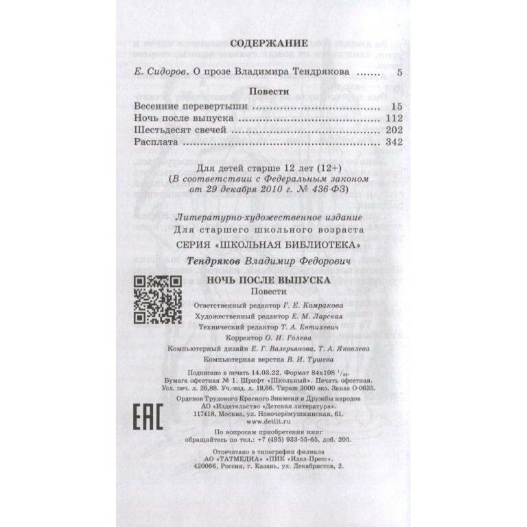 Книга: Книга Ночь после выпуска (Владимир Федорович Тендряков); Детская литература, 2022
