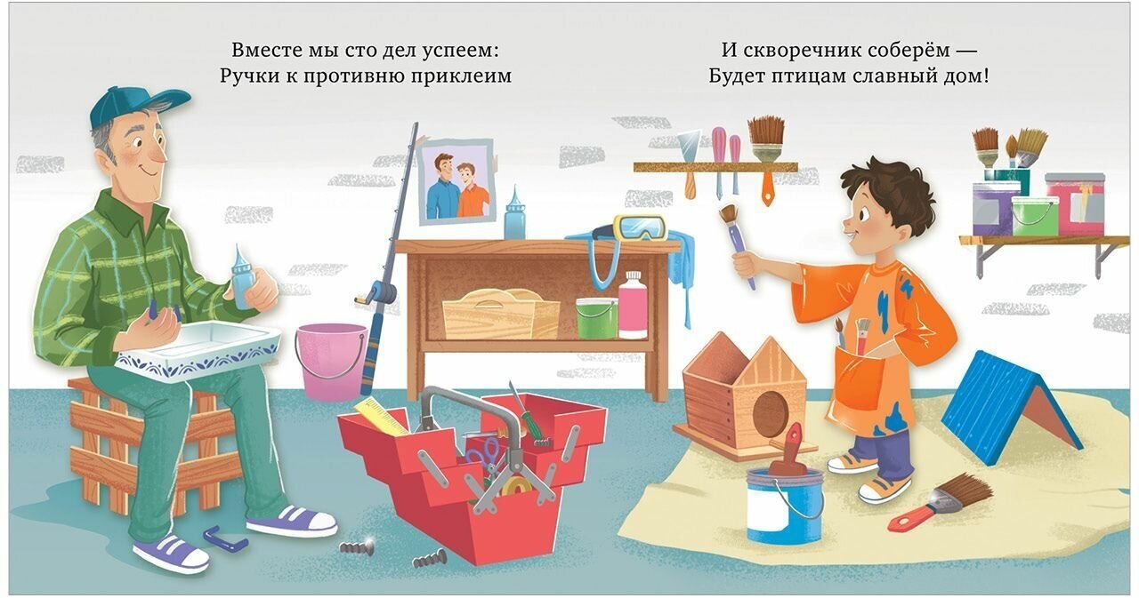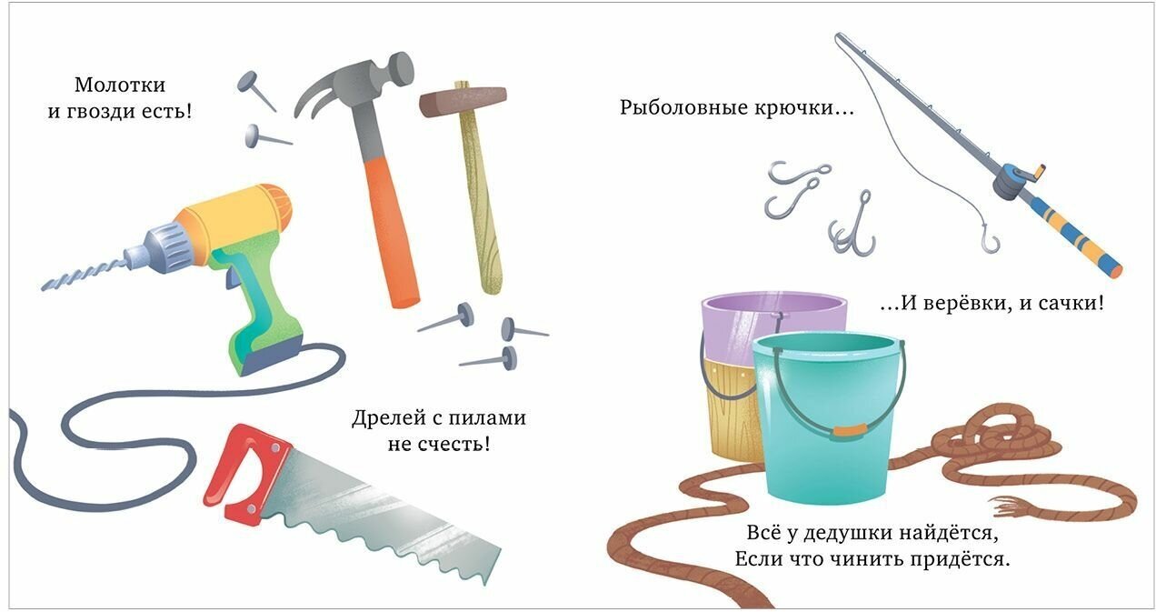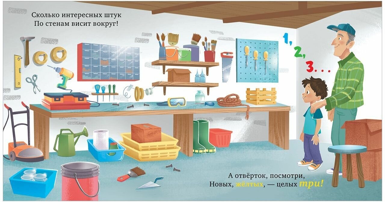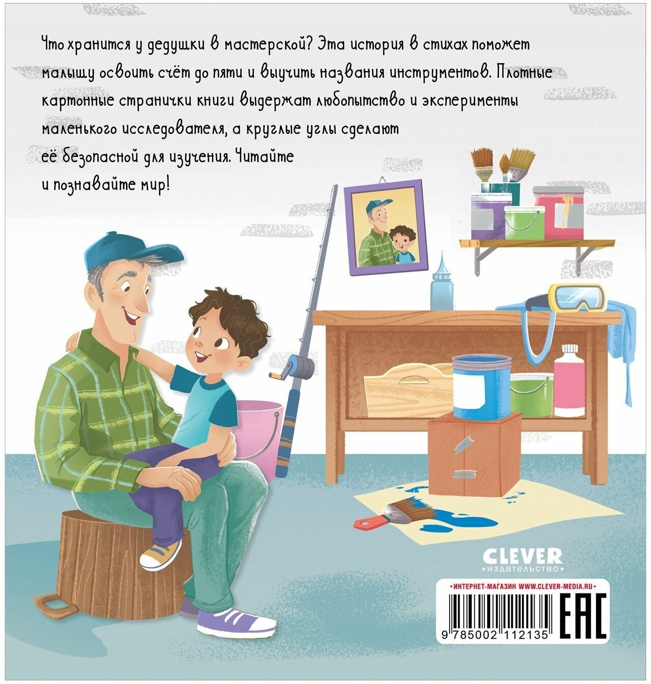 Что хранится у дедушки в мастерской? Эта история в стихах поможет малышу освоить счёт до пяти и выучить названия инструментов. Плотные картонные странички книги выдержат любопытство и эксперименты маленького исследователя, а круглые углы сделают её безопасной для изучения. Читайте и познавайте мир!