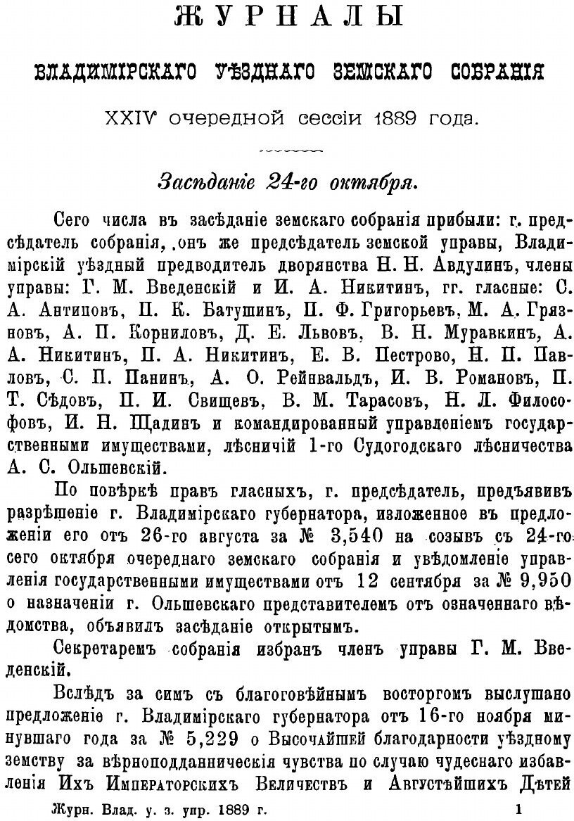 Журнал и доклады Владимирского уездного земского собрания 1890 года (без автора), 2012