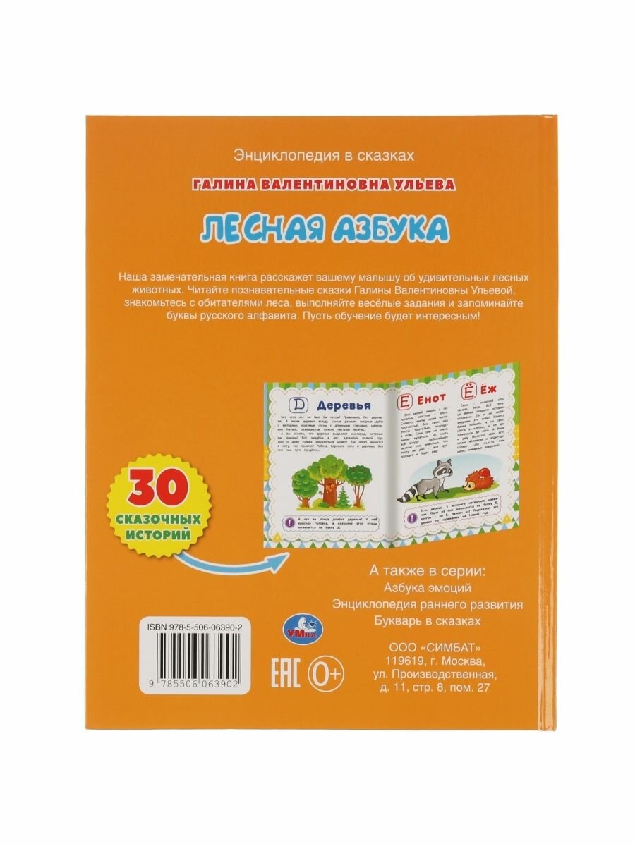 Энциклопедия в сказках «Г. Ульева. Лесная азбука» ТМ «УМка» станет прекрасным обучающим подарком для маленького любознайки: 15 развивающих сказочных историй, интересные задания, учим буквы, красочные иллюстрации. В эту книгу вошли чудесные авторские сказки Галины Ульевой, которые в игровой манере помогут малышу выучить буквы русского алфавита. Её сказки о милых лесных обитателях развеселят ребёнка, а яркие картинки и весёлые задания помогут крепко усвоить материал. Благодаря удобному формату книжку можно взять с собой в дорогу. Рекомендовано детям старшего дошкольного возраста.