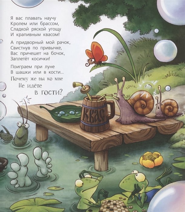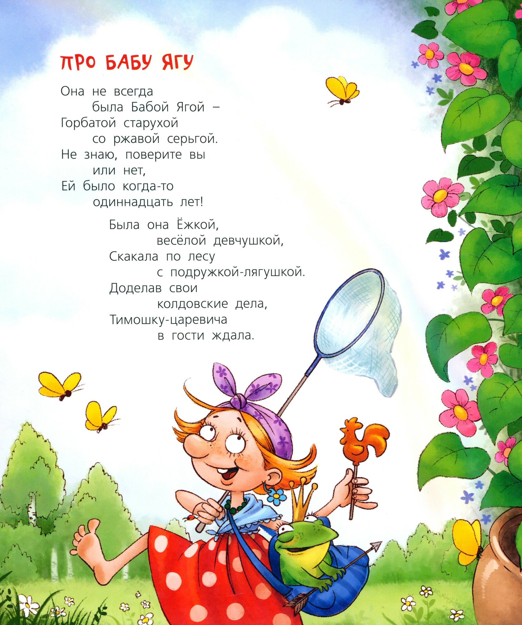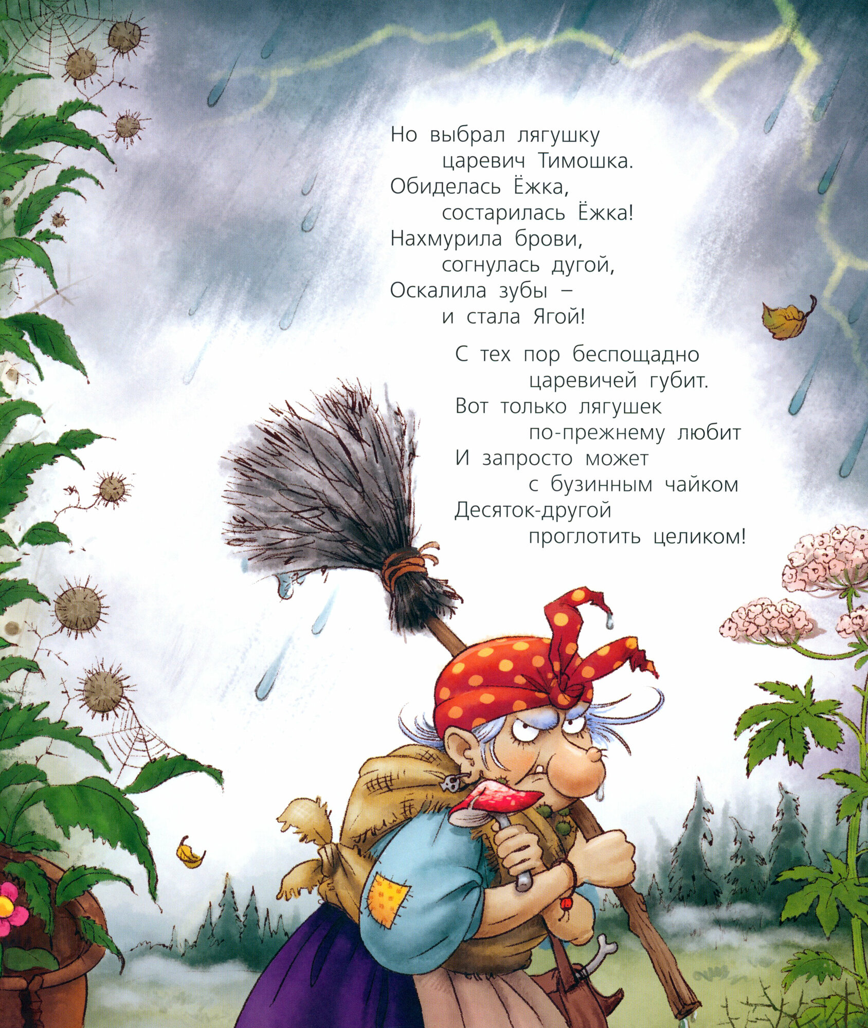 Бабка Ёжка давно не обижается, когда её называют бабкой, а не бабушкой или бабуленькой, – привыкла. Зато её ужасно расстраивает, когда кто-то говорит, что она зловредная, коварная, нелюдимая и питается исключительно добрыми молодцами. «Надо же такое выдумать!» – ворчит Ёжка, помешивая грибной супчик в начищенном до блеска чугунке. Это она опять кого-то в гости ждёт. Друзей у нашей весёлой и озорной Бабки Ёжки много: и Водяной, и Леший, и даже сам Кощей! Вы тоже с ними подружитесь, ведь все они встретятся вам на страницах этой книжки. Весёлые стихи про Бабку Ёжку и её сказочных приятелей сочинила Наталья Карпова, а нарисовала всю эту чудесную компанию Гета Белоголовская.