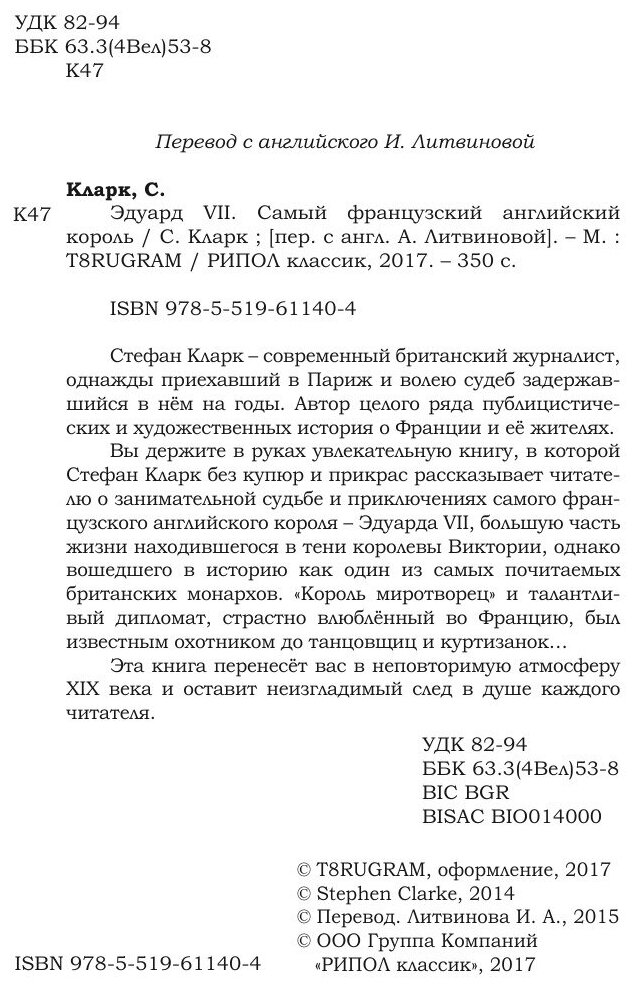 Книга Эдуард Vii Самый Французский Английский король (Кларк Стефан), 2017