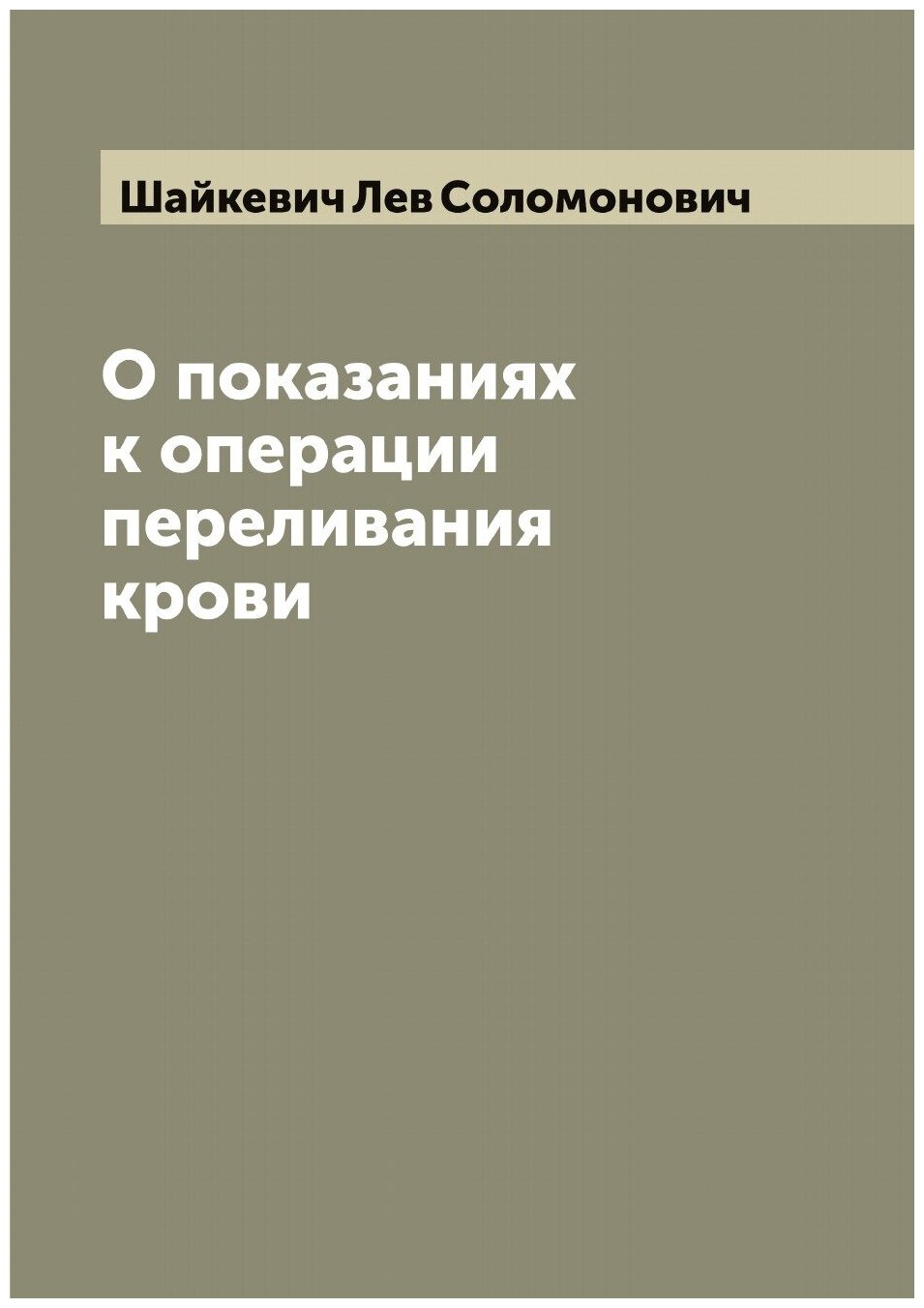 Книга О показаниях к операции переливания крови (Шайкевич Лев Соломонович), 2022
