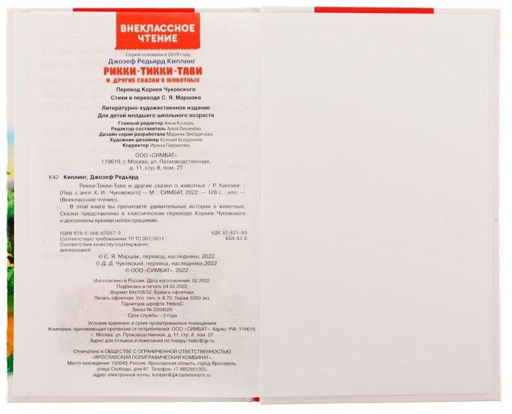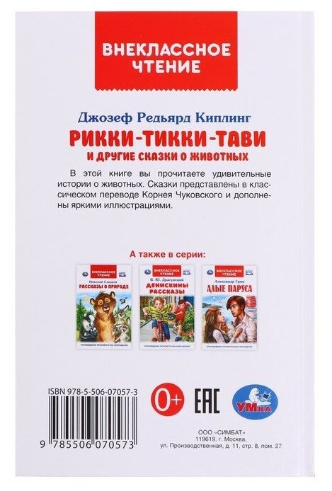 Книга Рикки-Тикки-Тави и другие сказки о животных. Внеклассное чтение (Киплинг Редьярд Джозеф), 2018