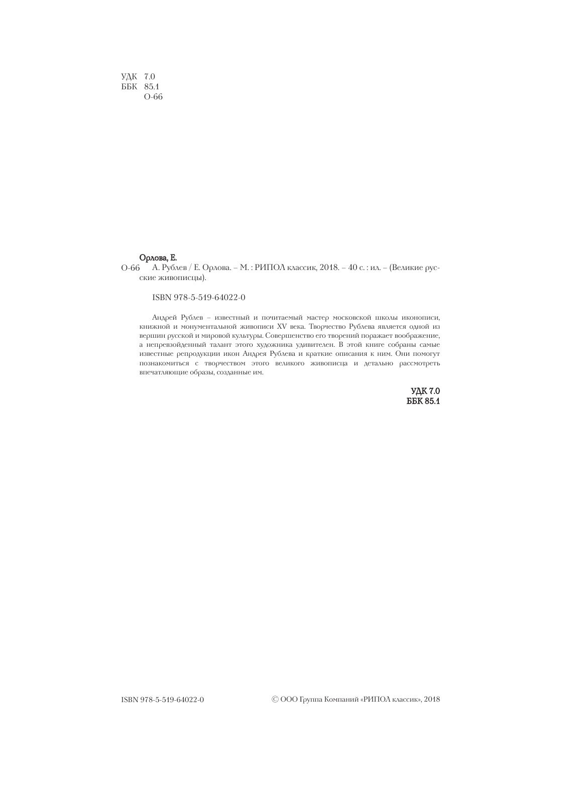Книга: Книга Рублев (Орлова Е.А.), 2018