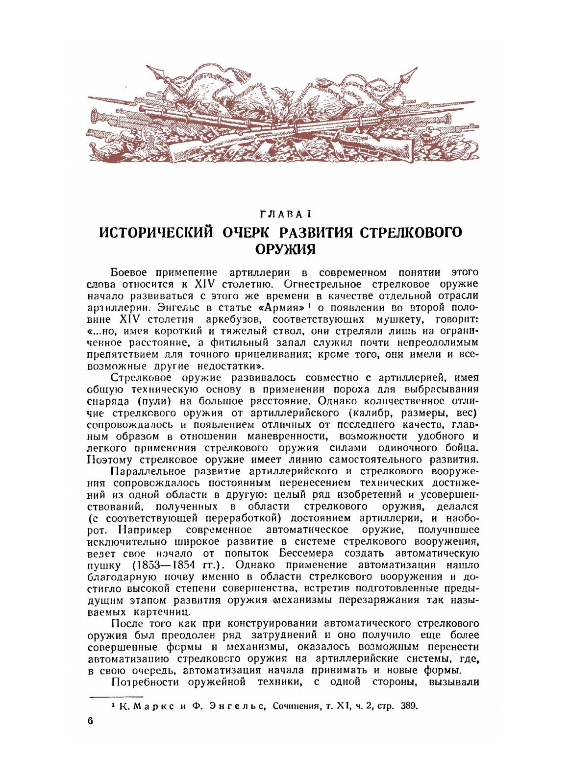 В первой книге описаны образцы индивидуального стрелкового оружия, дан исторический очерк развития стрелкового оружия (в том числе автоматического) и классификация систем последнего.