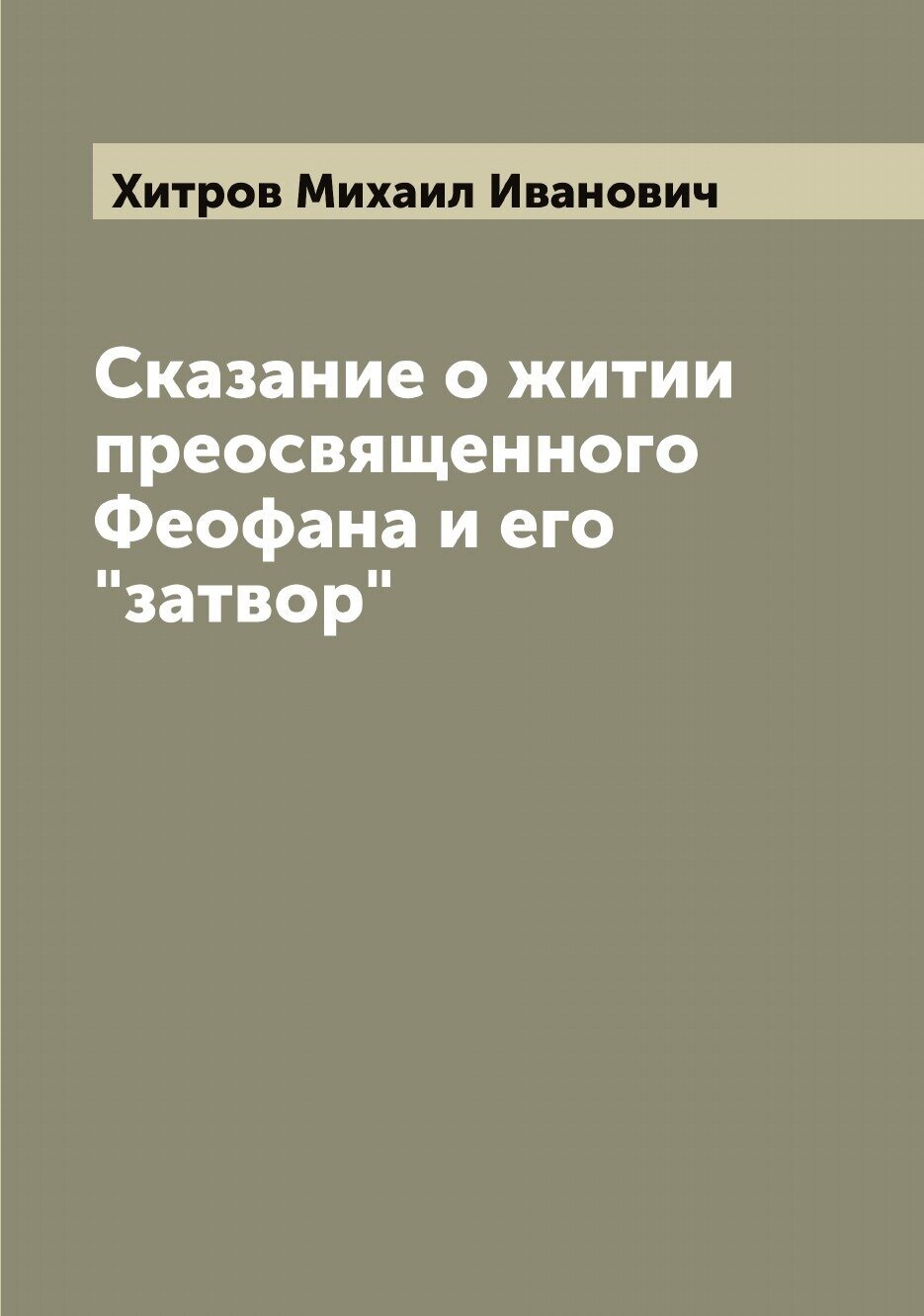 Книга Сказание о житии преосвященного Феофана и его "затвор" (Хитров Михаил Иванович), 2022