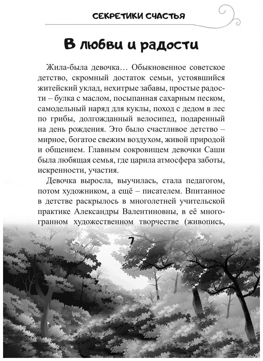 «Секретики счастья» – третья книжка рассказов Александры Мазуркевич, продолжение вышедших в 2021 году «На улице детства» и «Родники добра», которые тепло встречены читателями. Это цикл рассказов для семейного чтения. Большое человеческое счастье состоит из маленьких, открывшихся с детства секретов счастья – о радости, чуткости, желании дарить добро тем, кто рядом.