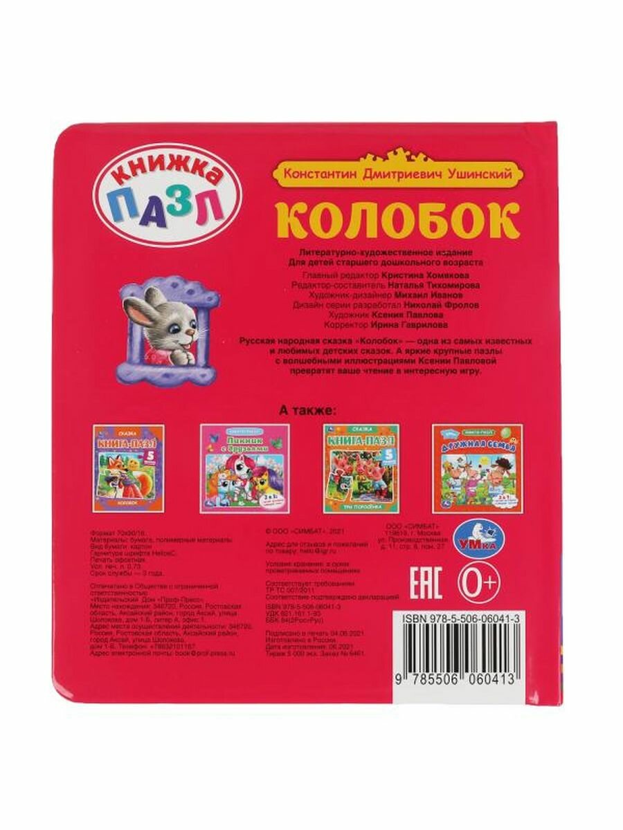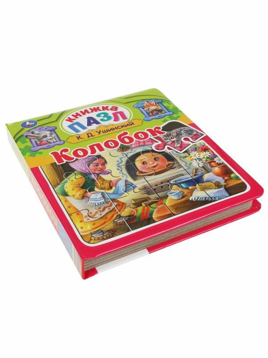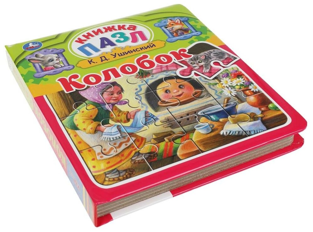 Книга-пазл «Колобок» ТМ «УМка» станет прекрасным подарком для ребёнка: любимая сказка в обработке К. Д. Ушинского, 5 пазлов, красочные иллюстрации. Данная книга выполняет сразу 2 функции: это и книга для чтения, и игра в пазлы. На каждом развороте малыша ждёт интересное повествование, а также яркий пазл с изображением сказочных героев. Книжка изготовлена из плотного картона, поэтому мамы могут не опасаться, что ребёнок порвёт странички. Благодаря компактным размером книгу удобно брать с собой.