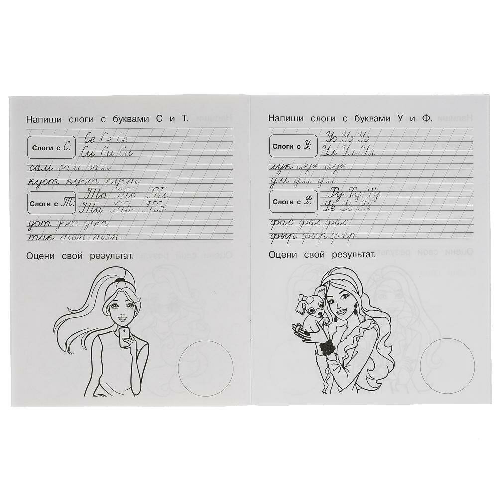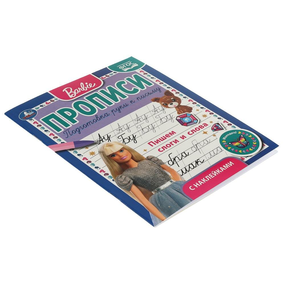 Книга Пишем слоги и слова. Прописи с поощрительными наклейками. Барби. 165х210мм. 16 стр. (без автора), 2021