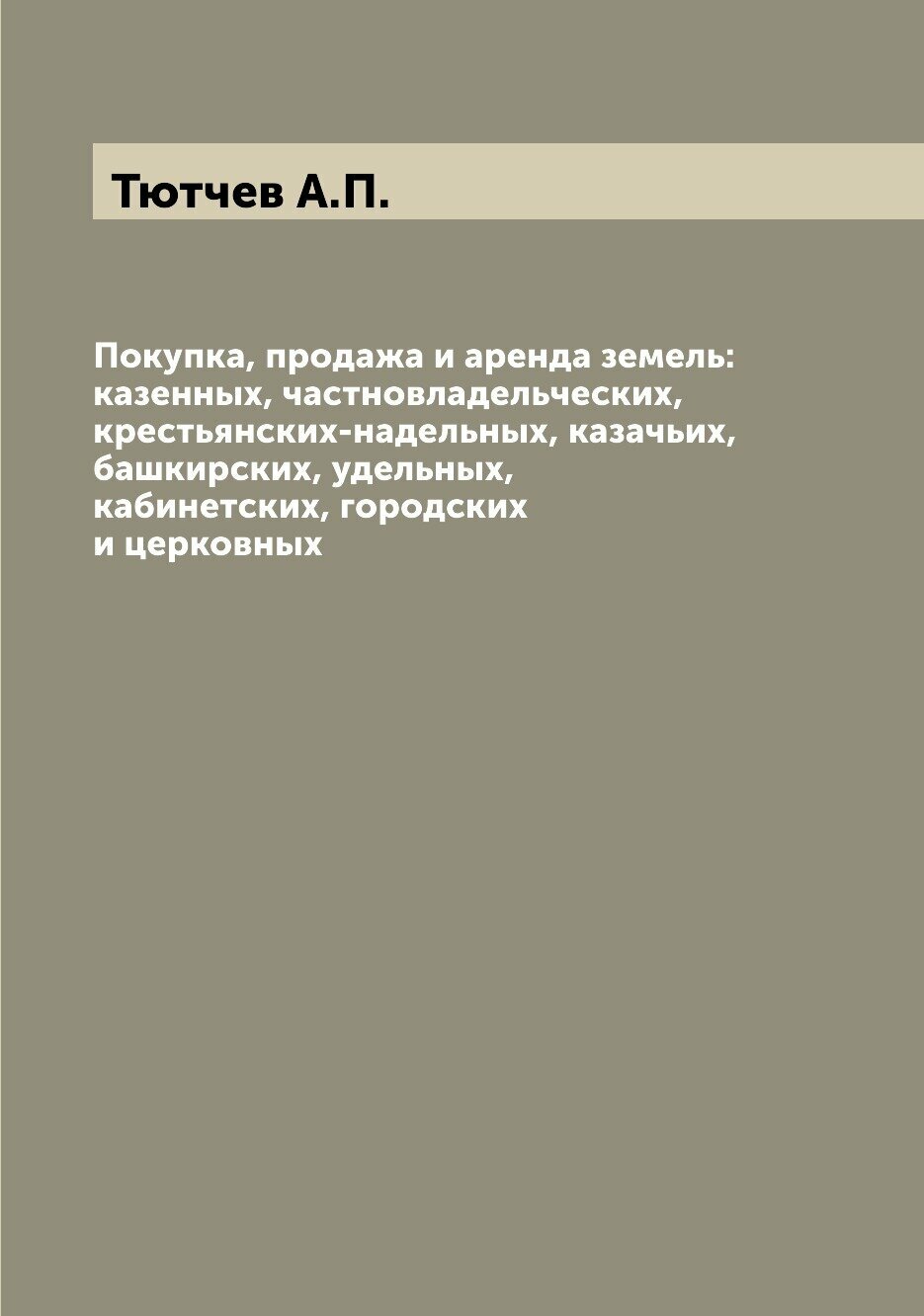 Книга Покупка продажа и аренда земель: казенных частновладельческих крестьянских-над... (Тютчев Фёдор Иванович), 2022