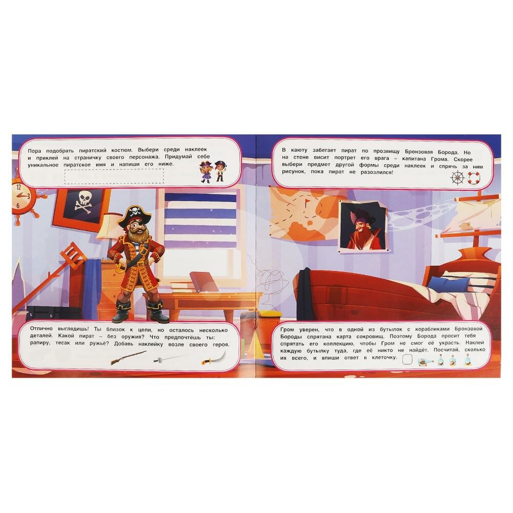 Книга Креативные наклейки. Храбрые пираты. 200х200 мм 8 стр. + наклейки Умка в кор.50шт (Нет автора), 2021