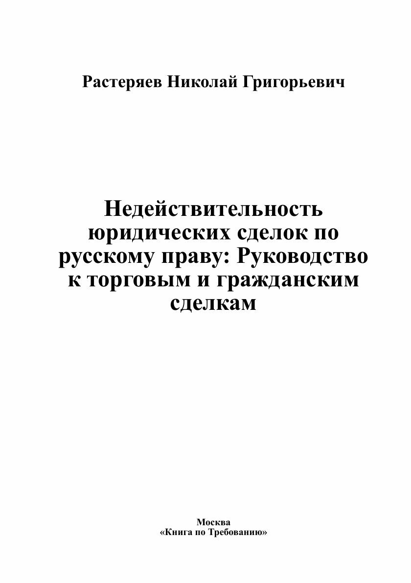 Книга Недействительность юридических сделок по русскому праву: Руководство к торговым и... (Растеряев Николай Григорьевич), 2022
