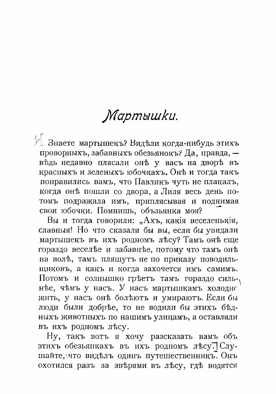 Содержание: В саду; Мартышки; Павианы; Ласточки; Грачи; Волки; Лисицы; Медведи
