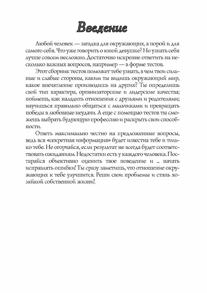 Самые интересные и лучшие тесты для девочек! Как относятся к тебе окружающие? Оптимистка ты или пессимистка? Умеешь ли ты дружить? Насколько ты самостоятельна? О чем может рассказать твоя походка? Что у тебя за имидж и нравишься ли ты парням? Ответы на эти и многие другие вопросы ты найдешь в сборнике психологических тестов. Они помогут не только весело провести время, но и понять себя, стать более уверенной и успешной.Издательство RUGRAMМягкий переплетОбъем - 160 стр.Формат - 148x210 мм.ISBN 978-5-521-76284-2Год издания: 2022