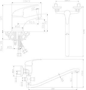 | ВКоробке | Смеситель - 1 шт. Лейка - 1 шт. Шланг - 1 шт. Настенный держатель - 1 шт. Эксцентрик - 2 шт. Инструкция - 1 шт. |