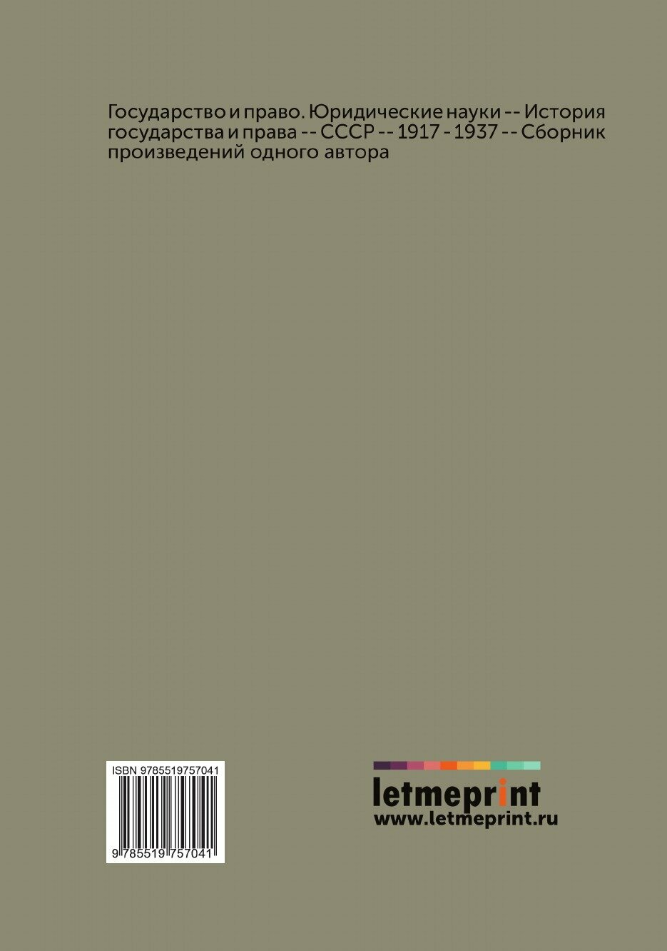 Государство и право. Юридические науки -- История государства и права -- СССР -- 1917 - 1937 -- Сборник произведений одного автора
