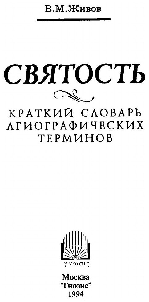 Книга Святость Краткий словарь агиографических терминов (В. М. Живов); Гнозис, 1994
