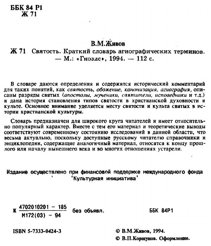 Сервис сравнения цен СкидкаГИД предлагает сравнить цены на товар «Книга: Книга Святость Краткий словарь агиографических терминов (В. М. Живов); Гнозис, 1994»