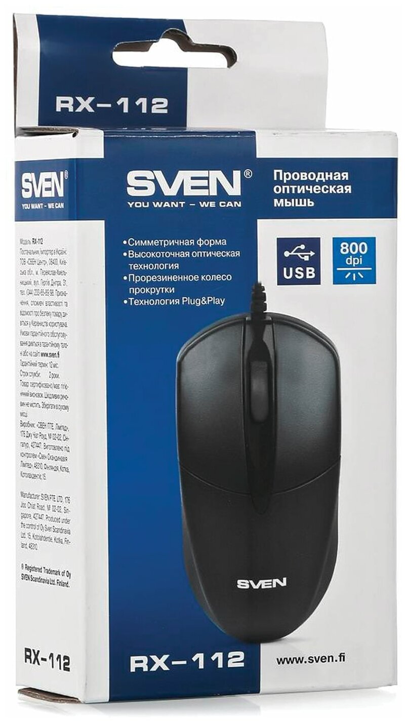 Мышь Sven RX-112 USB черный RX-112 USB (черный)