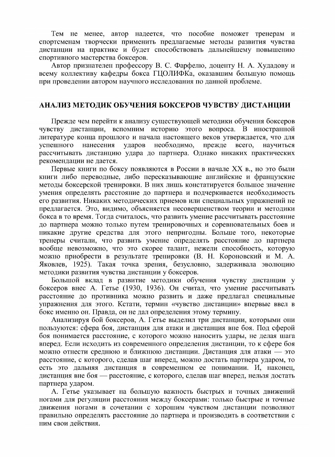 Данная работа посвящена исследованию одного из важных и в то же время малоизученных компонентов спортивного мастерства боксеров — чувству дистанции и методике его развития. В ней использованы и обобщены экспериментальные и теоретические данные по физиологии, психологии, теории и методике физического воспитания, а также собственные исследования автора. Предназначена работа для тренеров, спортсменов и инструкторов-общественников. С учетом того, что за последние годы значительно возрос интерес к данной проблеме, работа может представить определенную ценность и для научных работников в области физической культуры и спорта.