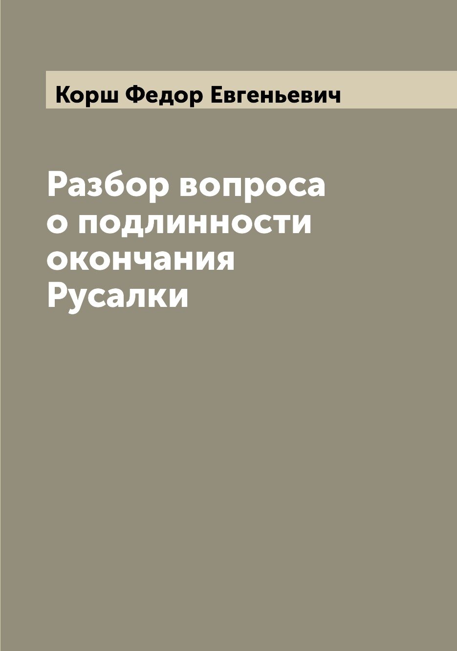 Книга Разбор вопроса о подлинности окончания Русалки (Корш Федор Евгеньевич), 2022