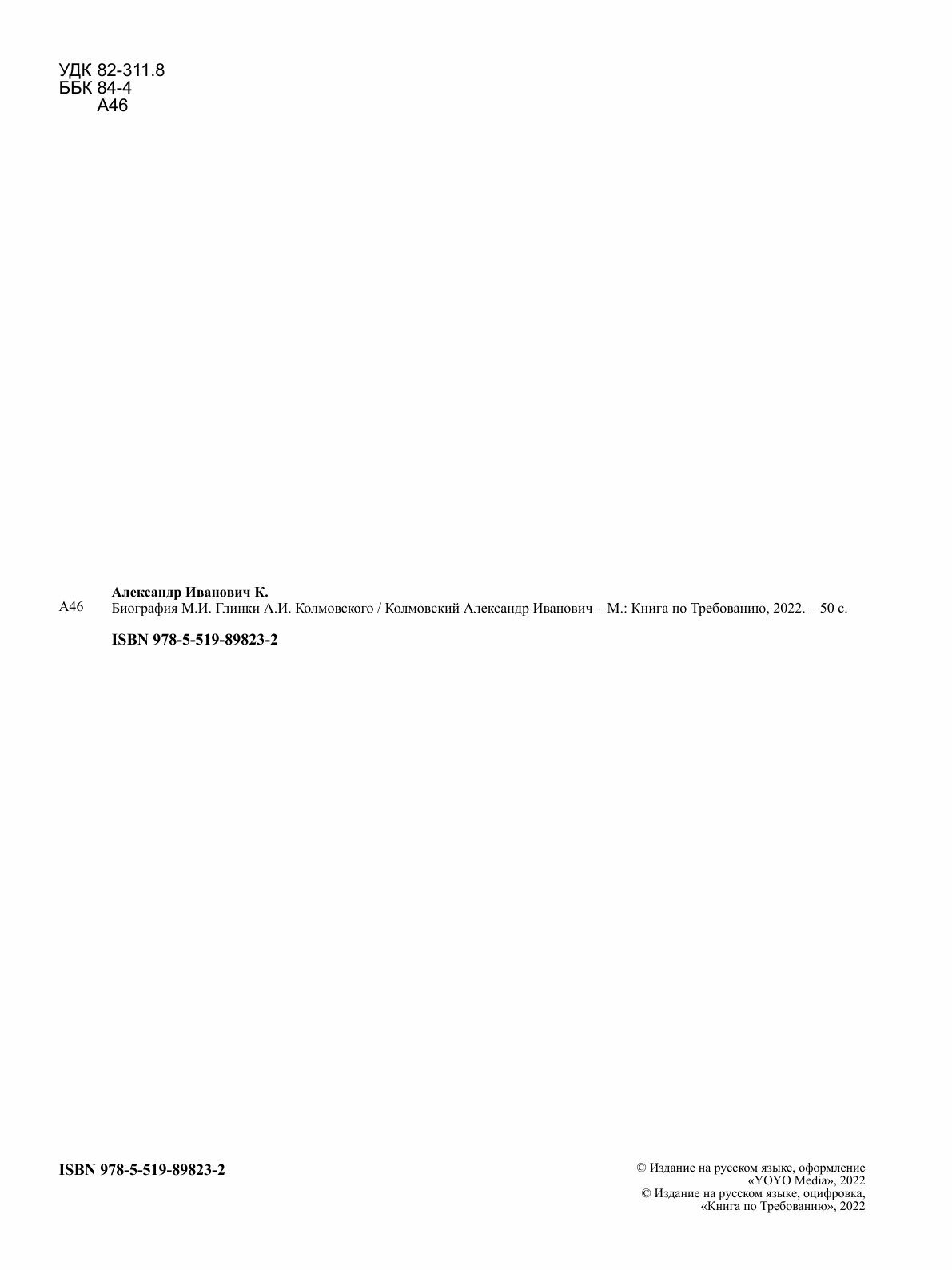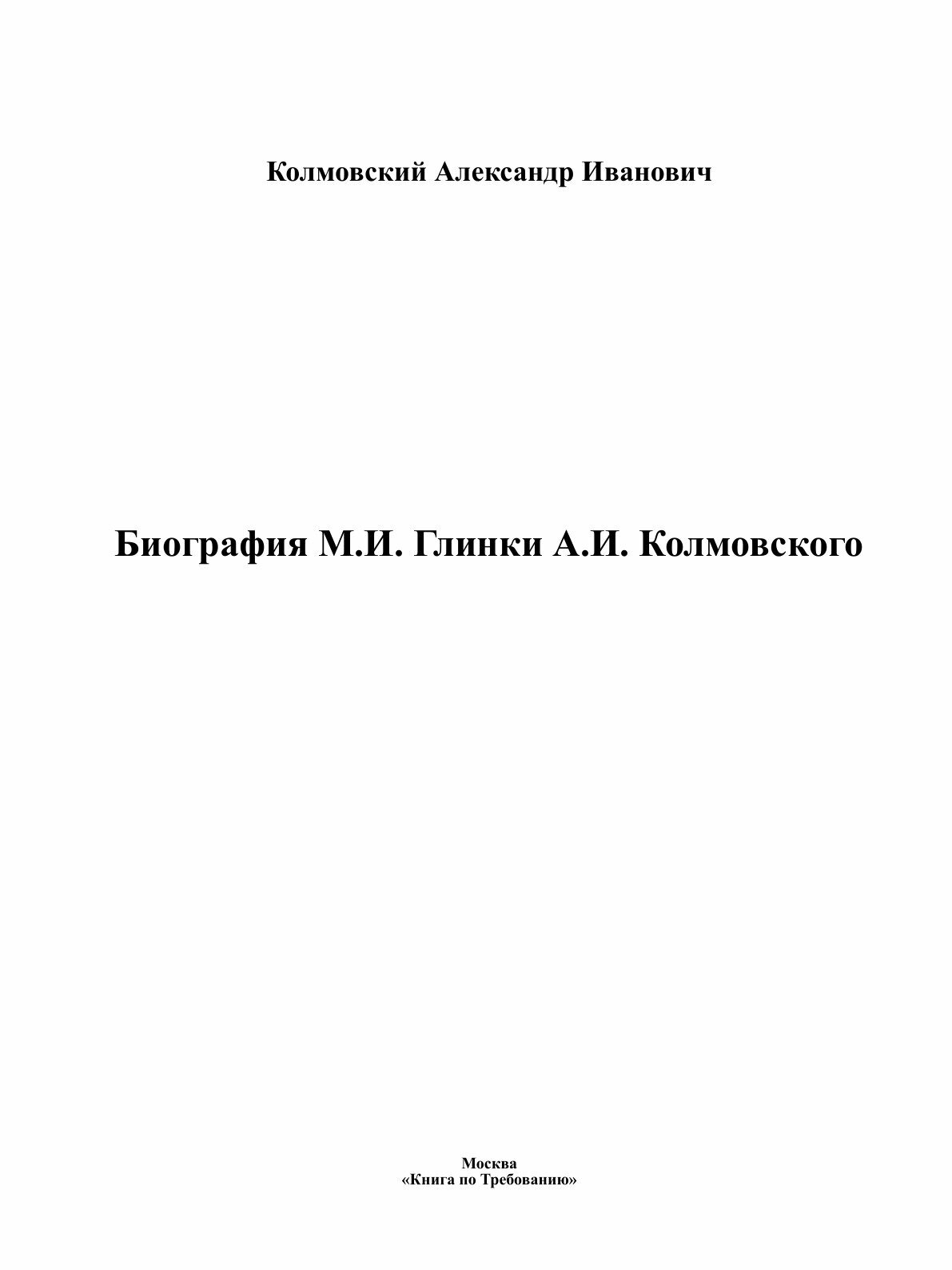 Книга Биография М.И. Глинки А.И. Колмовского (Колмовский Александр Иванович), 2022