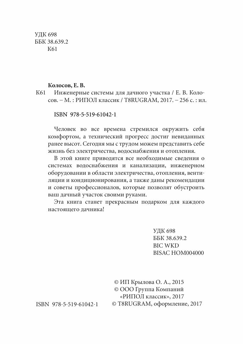 Книга Инженерные системы для дачного участка (Колосов Евгений Викторович), 2018